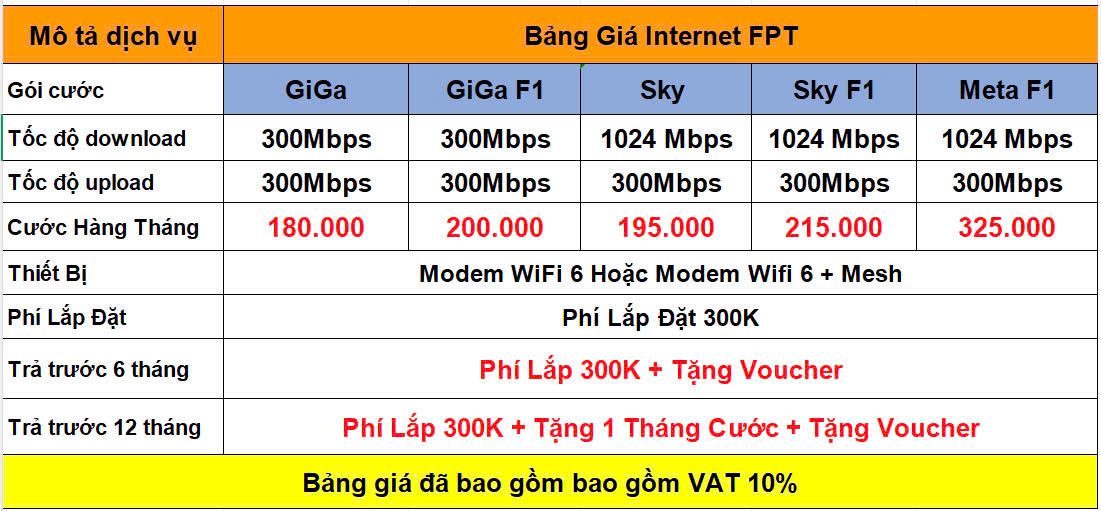 – Tặng Modem WiFi băng tần kép trị giá 1.300.000đ – Tặng Voucher Ưu Đãi Cước 100K – 150K